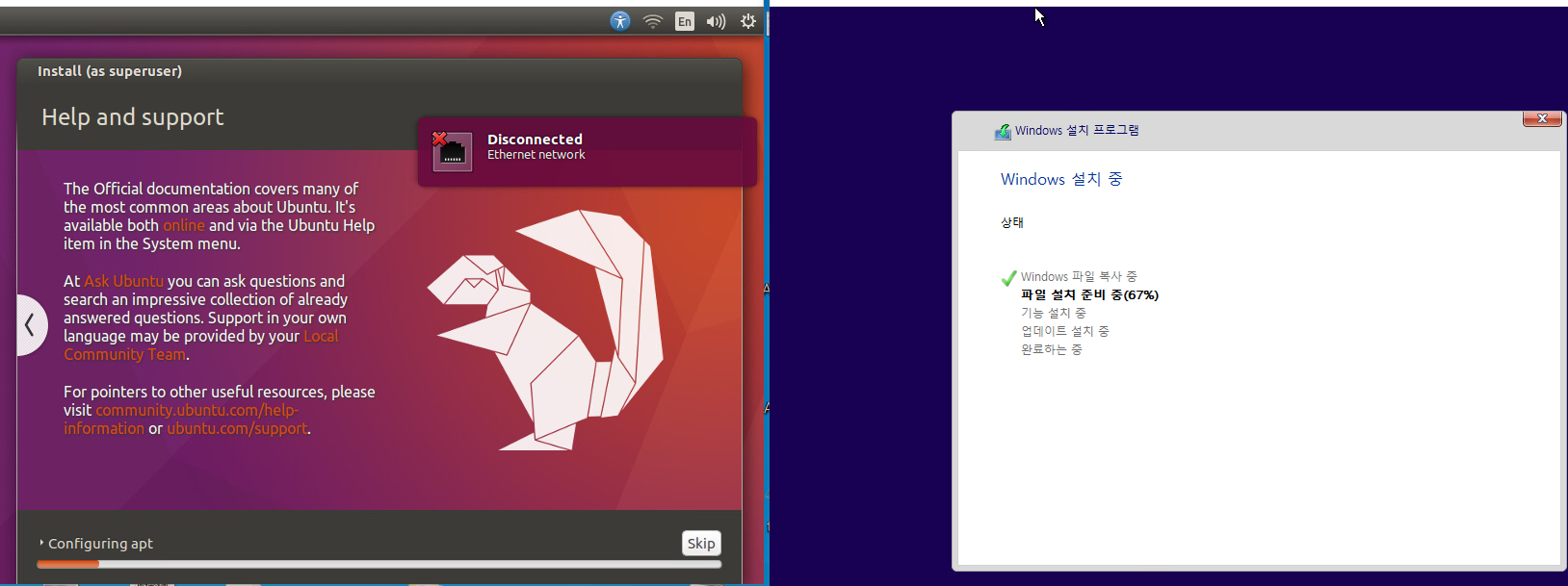 이제 리눅스와 윈도우를 생성한 가상머신에 각각 설치해주자