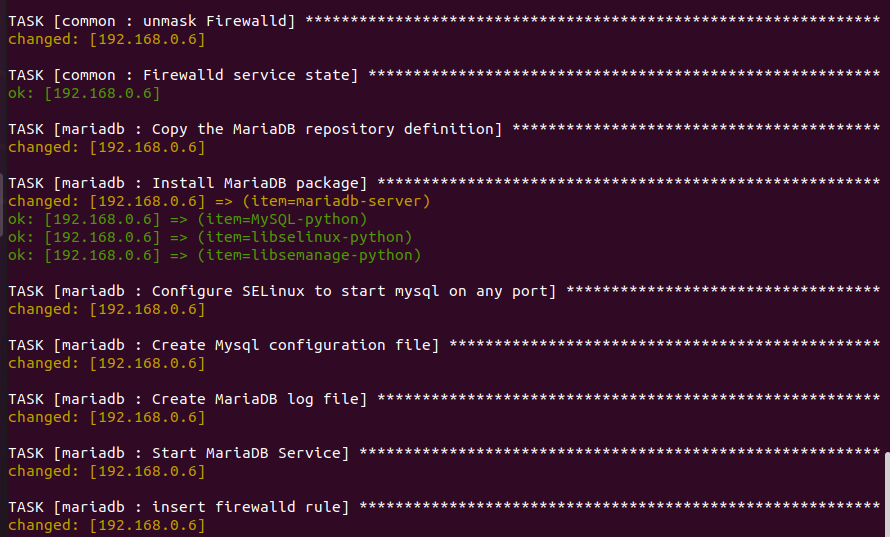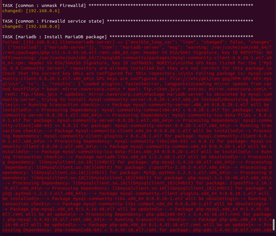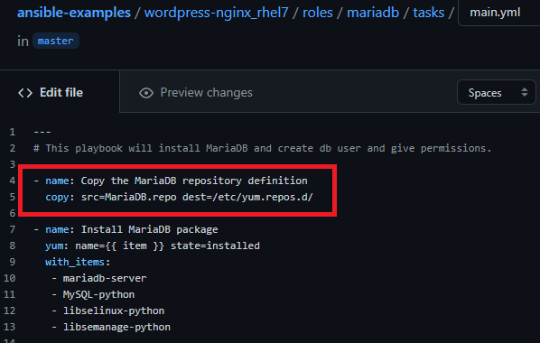 repo파일을 등록했다면 이제 MariaDB를 설치하는 tasks에서 이 repo파일을 yum 공식 repository에 추가하는 스크립트를 작성하면 이제 설치하는데 문제가 없을 것이다.