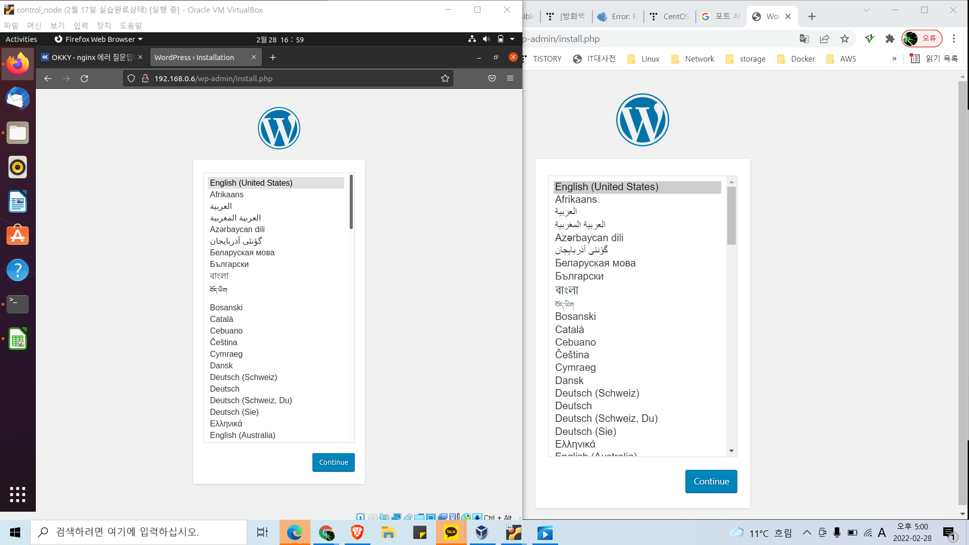 1. control node 서버 1대와 wordpress용 centos가 설치된 가상 머신을 준비한다.