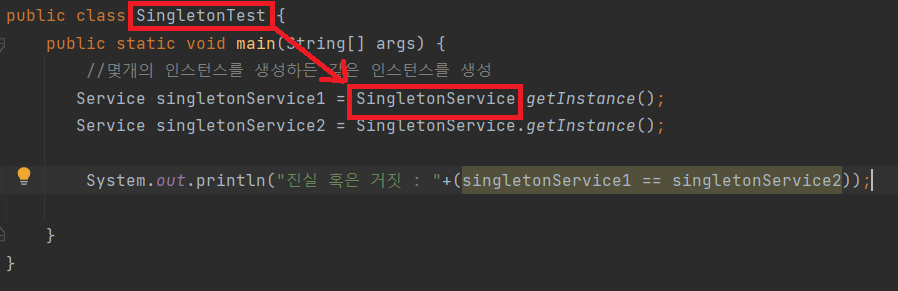 싱글톤패턴(Singleton Pattern) 은 하나의 실객체만을 반환시켜주어 하나의 Service()객체를 모든 클라이언트가 공유해서 쓸 수 있도록 해준다.
