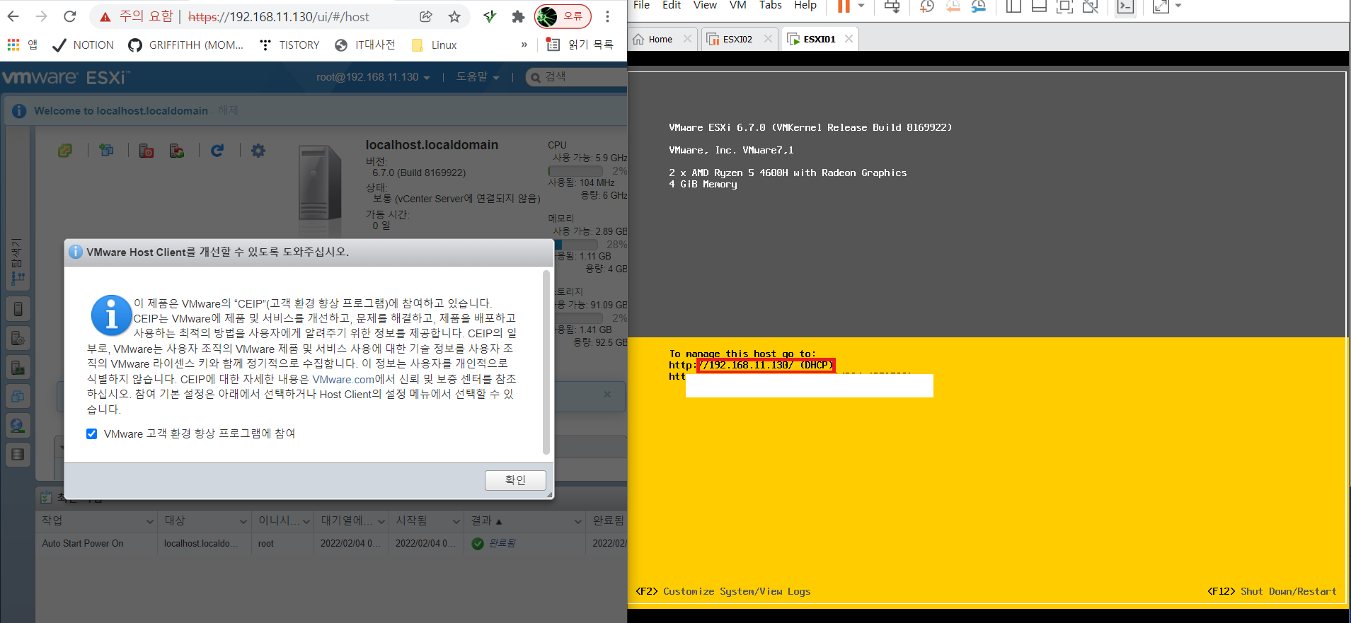 VM Workstation 에 ESXI를 설치 및 웹으로 ESXI 접속